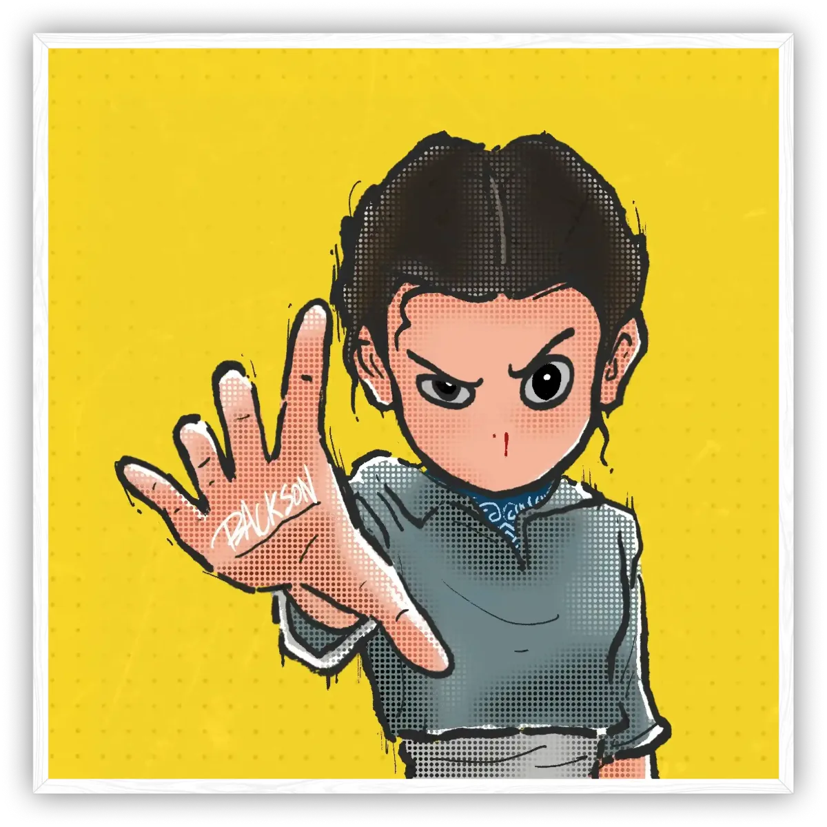 她是逆风中的执炬者,沾血的鼻尖是战痕,摊开的手掌里攥着“不认输”——当世界要她低头,偏要以怪诞手势,撞碎规则的墙。