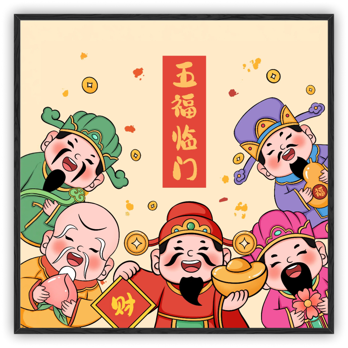 以传统五福神为魂,用萌化的讨喜形象拆解“福、禄、寿、喜、财”,让古早的祥瑞,变成触手可及的烟火期盼,把年节的热望,钉进日常的欢喜里。