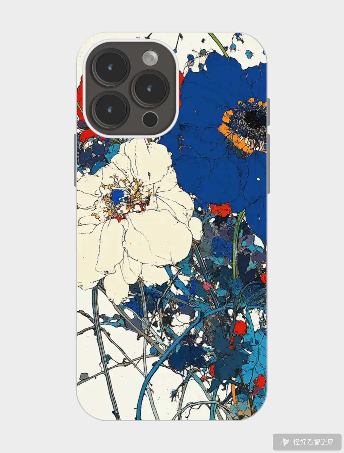 花开有声🌼每一瓣都藏着故事!这抹蓝白交织的艺术感手机壳,美到让人想把它贴在心上~#艺术风 #治愈系配色 🌿📱💫
