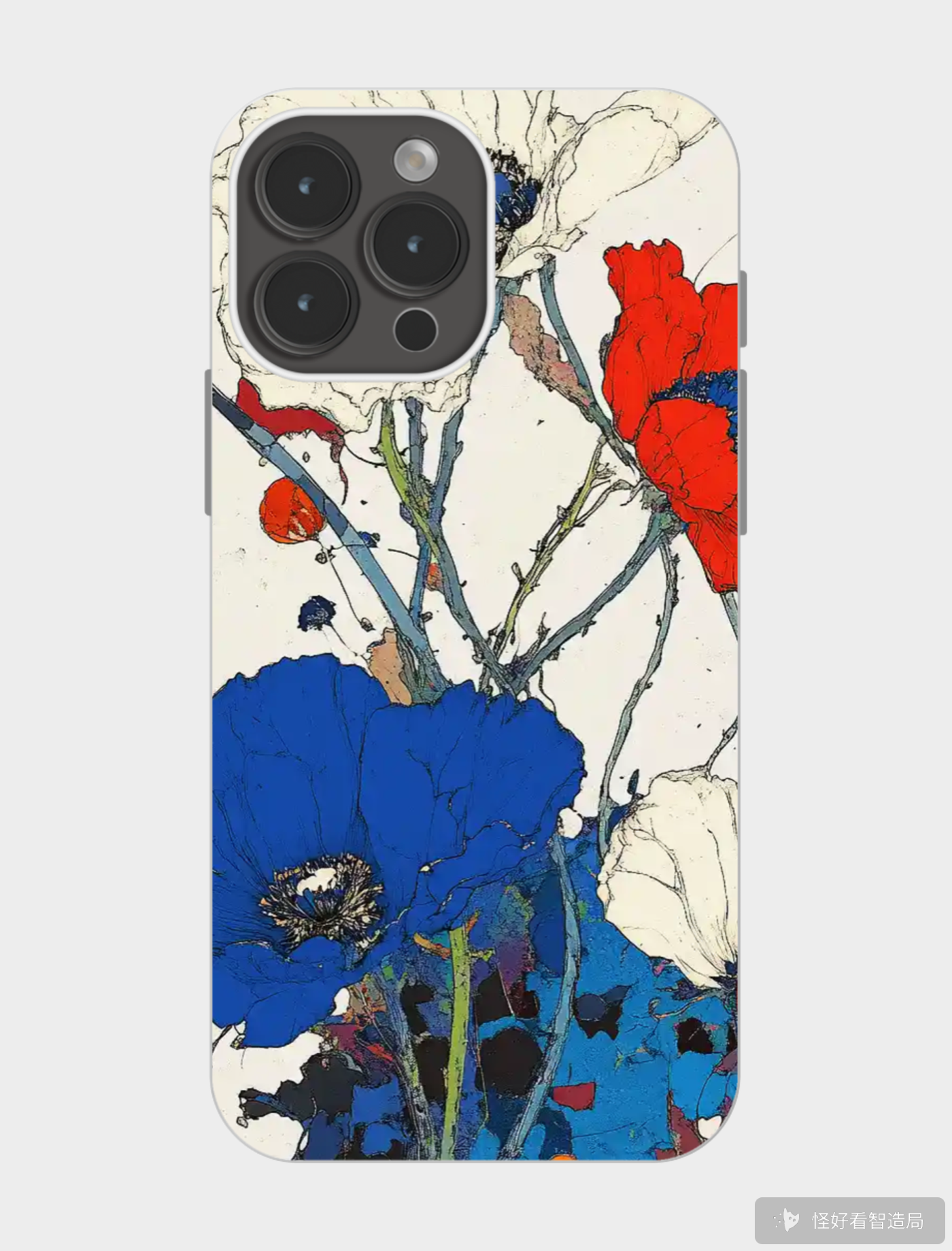 🎨蓝红碰撞!这抹野性花太绝了🔥 艺术感拉满の手机壳,一眼沦陷💘✨ #高级感 #花卉设计 #ins风配饰 🌸📱
