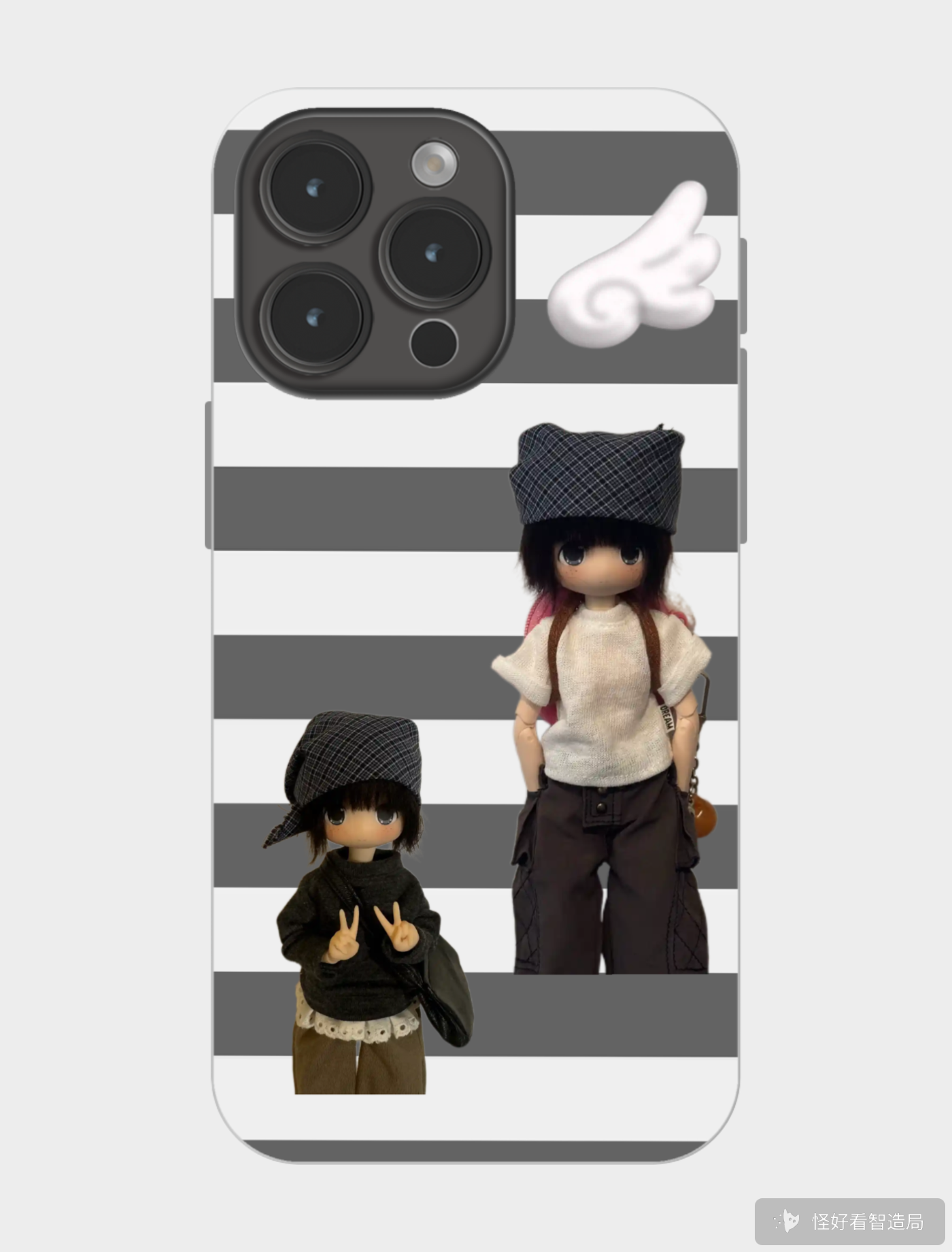 萌娃双煞上线!灰白条纹+天使翅膀,潮感拉满💥两个小人儿穿搭超有戏~谁说可爱不能又飒又有型?📱🖤🤍 #手机壳推荐#潮流玩具控